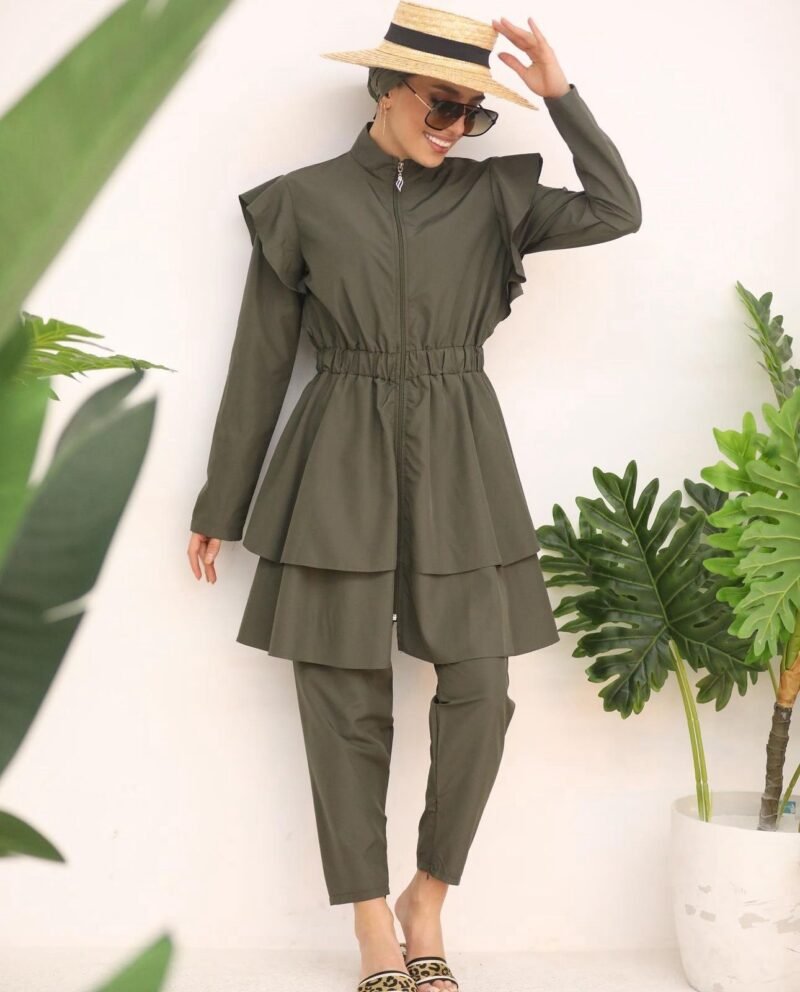 2 pieces set , made of water resistant material that dries very quickly and doesn’t stick to your body after swimming