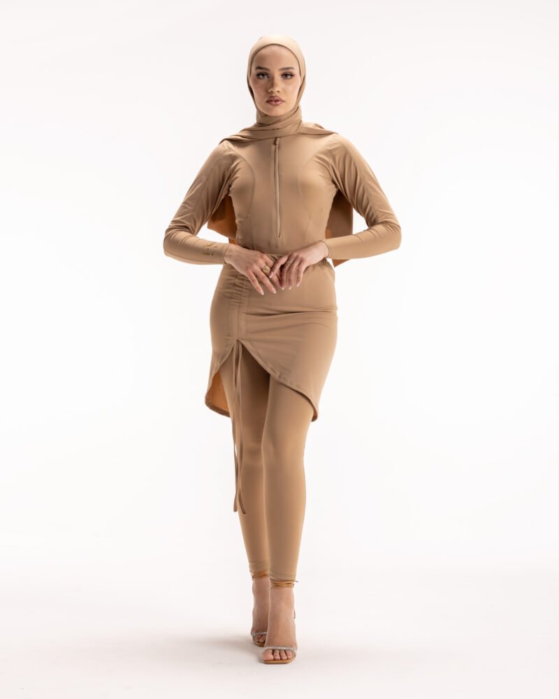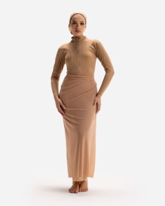 Bare Belle in full-length is the perfect swimwear set for women who value both modesty and comfort. Designed in a soft beige tone, this 3-piece set offers a gentle, breathable feel with a thinner, lightweight fabric compared to other styles like Sandy Sugar, making it ideal for warmer weather or relaxed beach days.