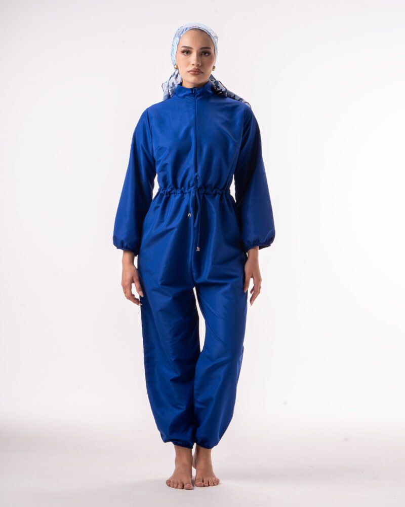 Ideal for women who seek full coverage without compromise, the Blue Gitane Jumpsuit blends modesty, movement, and modern swimwear design.